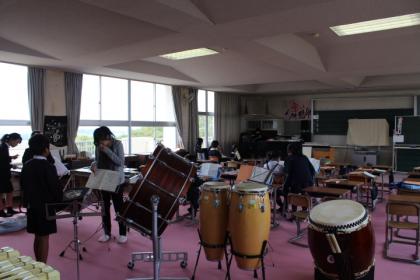 写真上:打楽器は正確なリズムを求められます。重要なパートですね。