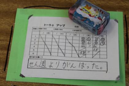 下:高学年では発表できたら印をすぐに書き込めるカードを用意。