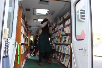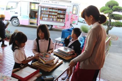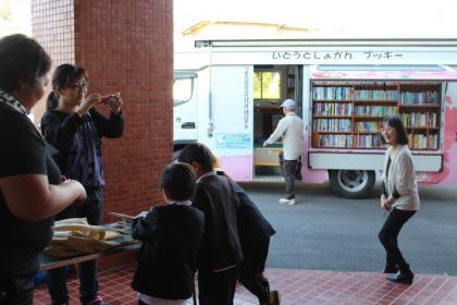 昨日はブッキーが来校し、子どもたちはたくさんの本を借りて教室へ帰ってきました。学校の図書室にはない、読みたい本を見つけたようです。