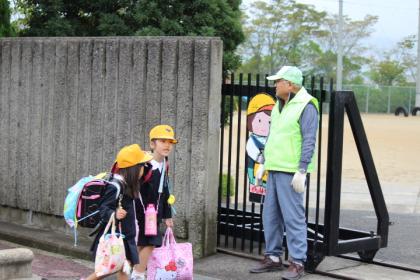 毎日登下校時に、集合場所、各所の交差点、校門前と色々なところで、安全ボランティアさんが見守ってくれています。今日も校門前で挨拶をしてくれました。いつもありがとうございます。