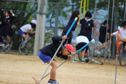 下:何度でもチャレンジ、竹馬。