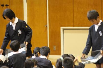 写真上:選挙管理委員さんが投票用紙を集めます。