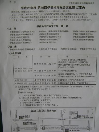 また、学校関係の行事として「第49回伊都地方総合文化祭」が9、10日にあります。※PTAだよりでも会場等紹介をしています。