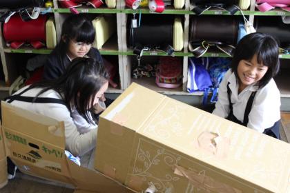 1年生を招待する「おもちゃランド」、力を合わせて準備しています。