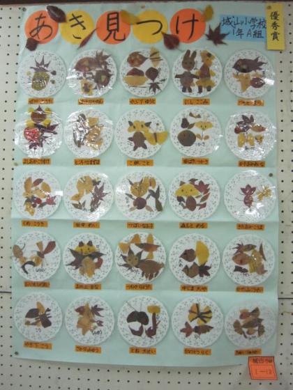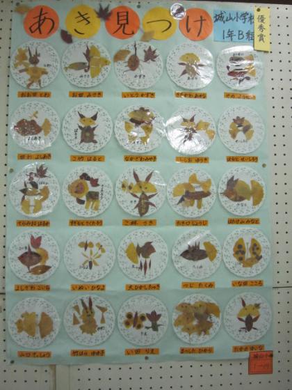 1年生の作品です。落ち葉を使ってこんな素敵な作品ができました。