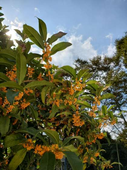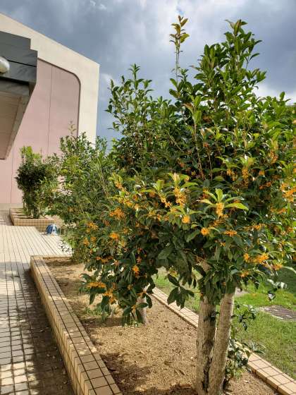 どこかな?と探していると、体育館の入り口に金木犀の花が咲いていました。