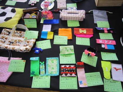 家庭科作品も清水小学校の体育館で展示されています。手芸に木工、調理についてなど、楽しんで作ったんだなと思うものばかりです。
