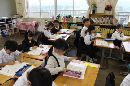 写真上:これまで習ったことをつかって考えよう。