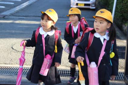 中:仲良しグループで〜す。並んで「おはようございます」。
