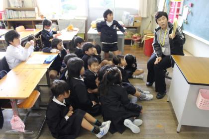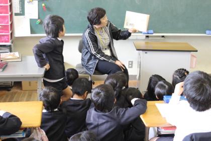 国語の物語文「お手紙」の前のお話がはいっている、「ふたりは友達」を先生に読んでもらっているところでした。