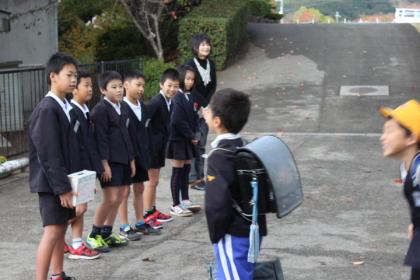 雨が降り出しそうな空でしたが、子どもたちの明るい挨拶の声で押しとどめたようで、傘をさすことはありませんでした。