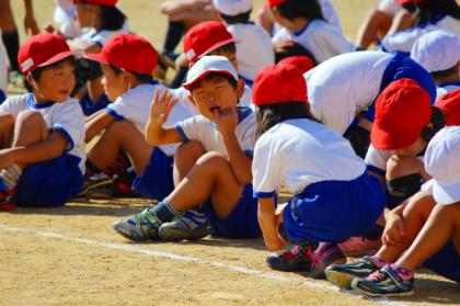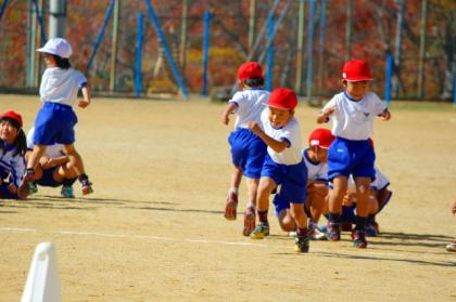 広い運動場でのリレーあそびは、今日が1回目。友だちとなかよくリレーをすることや、ルール(手でタッチ)を守ってリレーすることに気をつけて、力いっぱい・笑顔いっぱいに体育をした1年生です。。
