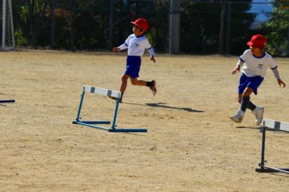 下:低いハードルに合わせて、走りながら身体を低く!