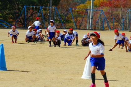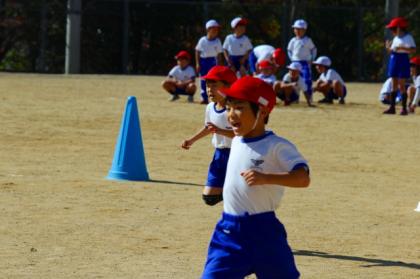 下:コーンを回って、さぁ次へ!次の番の子もワクワク待ってるぞ。