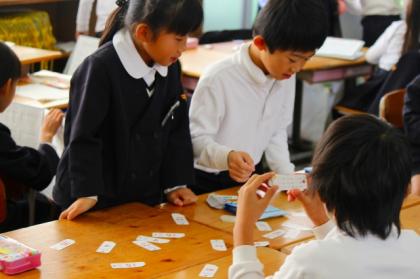 中:かけ算の答えをカルタ取りみたいにするとおもしろいよ。