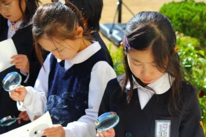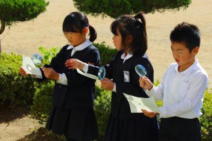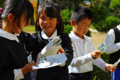 光の性質について学習する単元で、今日は虫めがねを使って紙をこがす実験をしました。