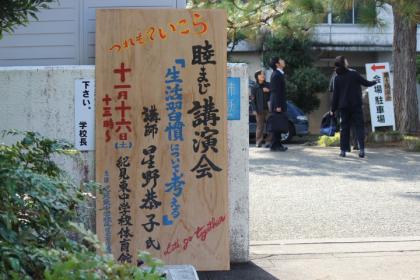 紀見東中学校区健全育成連絡協議会主催の『睦まじ講演会』が、紀見東中学校体育館で開催され、南和歌山医療センター(田辺市)小児科医長 星野 恭子氏をお迎えして、『生活習慣について考える』と題してご講演いただきました。