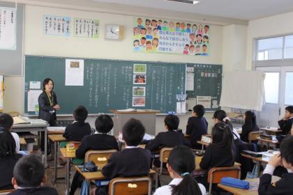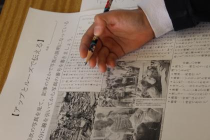 写真上:グループでまとめたことを発表しましょう。