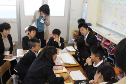 5年 B組での研究授業は『自分の考えをまとめて、討論しよう』の単元でした。本時は「グループ討論を行い、よりよい討論の仕方を考えることができる」を目標におこないました。