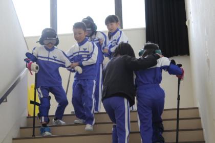 子どもたちは、慣れない活動に悪戦苦闘しながらも、声を掛け合いながら真剣に取り組んで、不自由さのある方々の立場になって考えようとしていました。