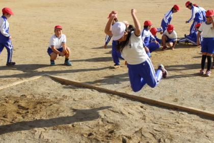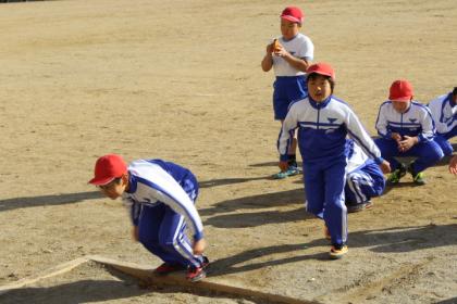 風が一段と寒さを感じる今日、運動場にある砂場で4Bの児童が立ち幅跳びの学習をしていました。今日は立ち幅跳びのコツを三種類学びました。