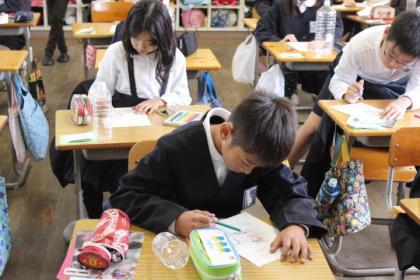 5年生は、図工でランプシェイドを作るようです。どんなデザインにするか、設計図を描いているところでした。