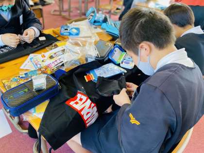 今日はポケットを縫ったり、ワッペンを作っていたりと、完成の姿が想像できるところまできました。