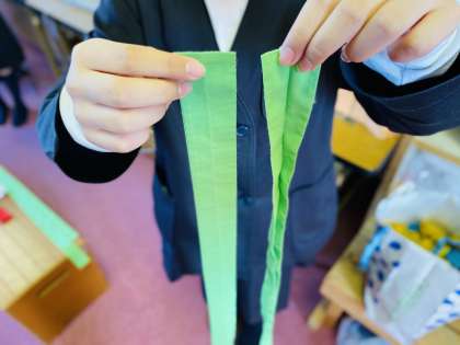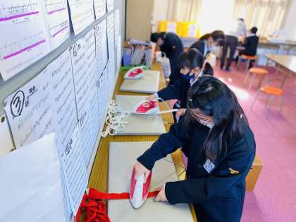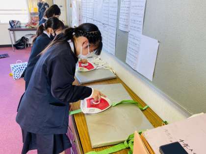 早く終わった児童は、先日のドッヂビー大会で使ったはちまきに、アイロンをかけてくれていました。