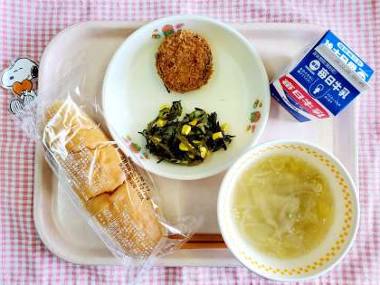 今日は、少しめずらしいまぐろのメンチカツでした。