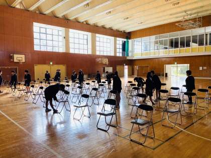 はじめのお手伝いは、体育館の椅子並べです。ロング休憩に椅子を並べたのですが、時間内にきれいに並べてくれました。
