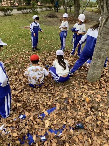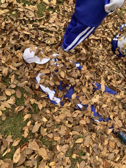 落ち葉で楽しく遊んでいるようです。