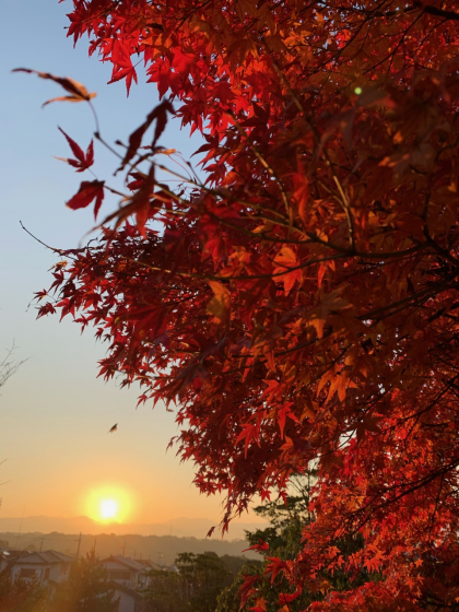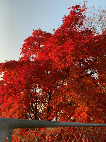 紅葉 朝日をあびて (グラウンド バックネット裏にて)