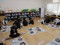 つぎは「まえまわり」です。両手をついて、体を丸くしてボールの様にくるりと回ります。難しいけれどとっても楽しいようで、授業の最後には「3回連続まえまわり」ができた子もいました。今度はどんな技ができるのか、次の練習が楽しみです。