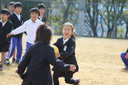 写真上:ドッジボール中でしょうか?笑顔で狙う!おそるべし!