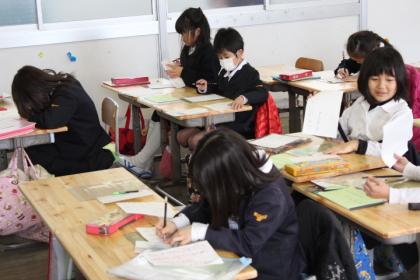 書き初め会に向け、練習を重ねています。字の形や止め、はねに気をつけて書けるようにしました。
