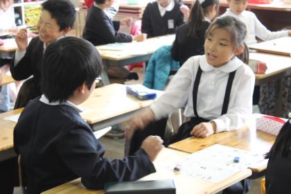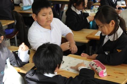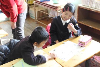 写真上:すごろくには、たくさんの食べ物や飲み物が書かれていましたね。