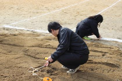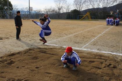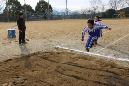 下:記録を測ります。“まだまだ跳べる!”(担任山浦、心の声)