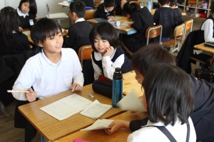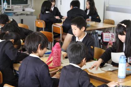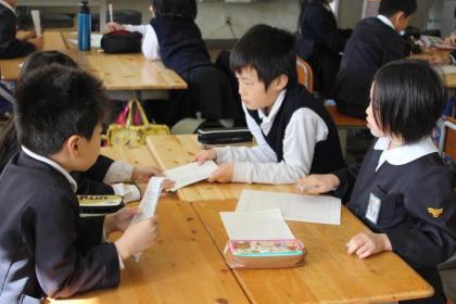 写真上:自分たちのアンケートが4年生から返ってきましたね。