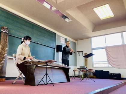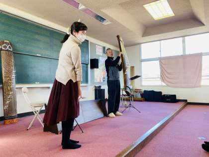 今日は、日本の音楽について学ぶ機会として、「琴・尺八」の生演奏を聴かせていただきました。