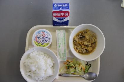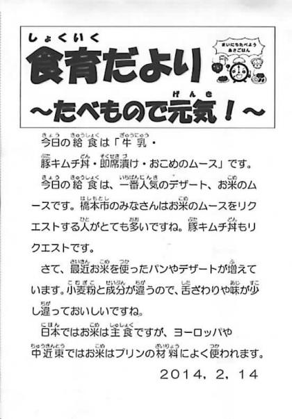 今日の献立は、牛乳・豚キムチ丼・即席漬け・おこめのムースです。ごちそうさまでした。(*^_^*)