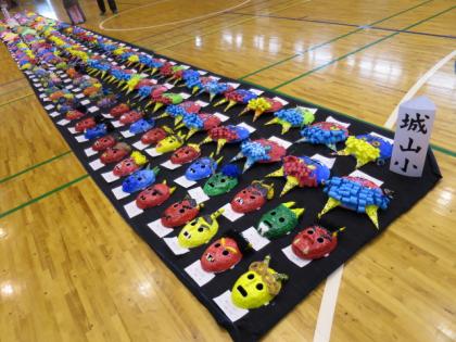 2月8・9日と高野口小学校体育館で、第31回工作彫塑展が開かれました。伊都地方の小中学校からたくさんの工夫を凝らした作品が集まり、城山小学校からは1・2年生が、鬼のお面を出品しました。