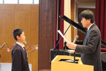 下:「表彰してもらった人だけの喜びでなく、城山小のみんなで受賞を喜び合いましょう。」