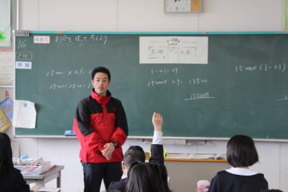 今日は、『割合をつかって考えよう』ということで、生活の中である問題を考えました。