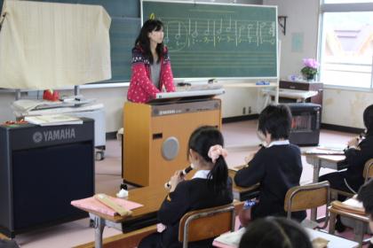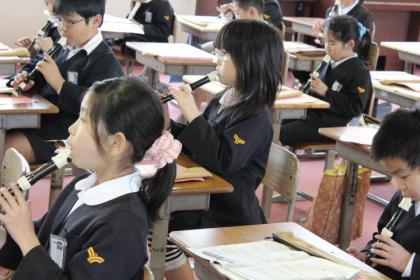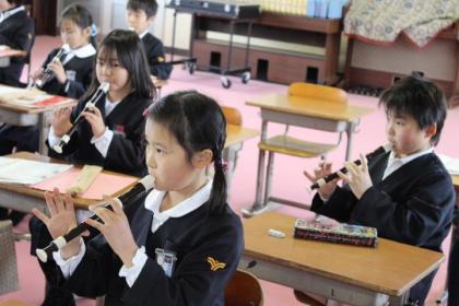 今日は「ド」と「レ」の指づかいを学習しました。きれいな音が出る息の強さなどのポイントを押さえた後、3年生で習う指づかいを総復習しました。