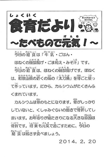 ☆ 2月20日の給食