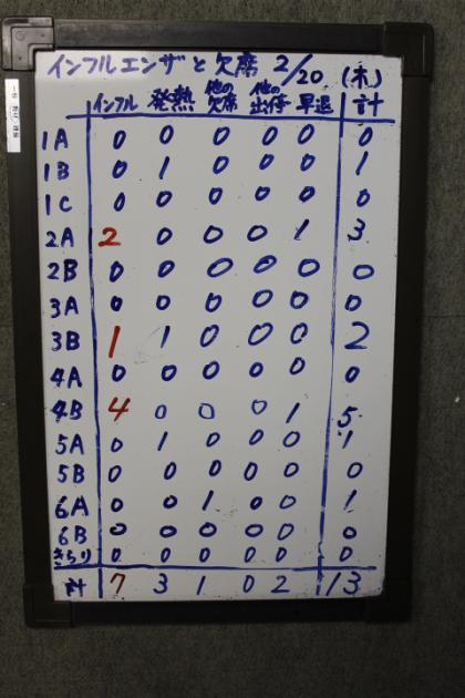 相変わらず、インフルエンザや風邪により欠席する児童が各学年にいます。