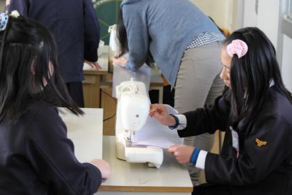 下:6年生はミシンの扱いも慣れたもの。さすがです。