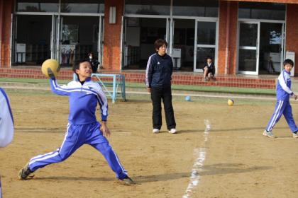 中:力強く投げる!