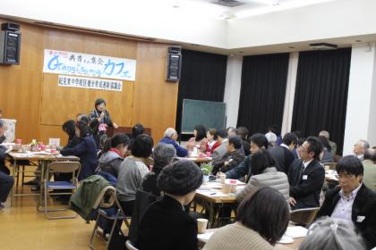 2月18日に紀見東中学校区健全育成連絡協議会主催による、『「共育ミニ集会「Otagaisamaカフェ」』が紀見地区公民館で開かれました。