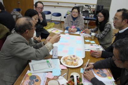 写真上:家庭教育支援チーム「ヘスティア」さんの進行により、話が盛り上がりました。